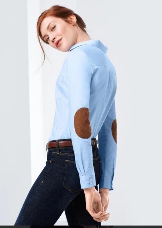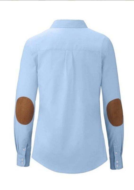 Жіноча сорочка ніжного блакитного кольору з вставками на ліктях. Натуральна тканина.