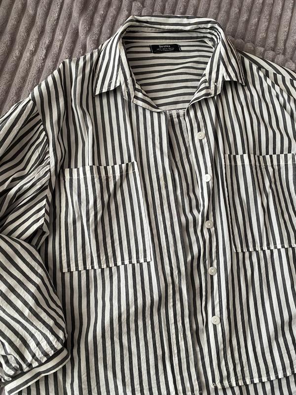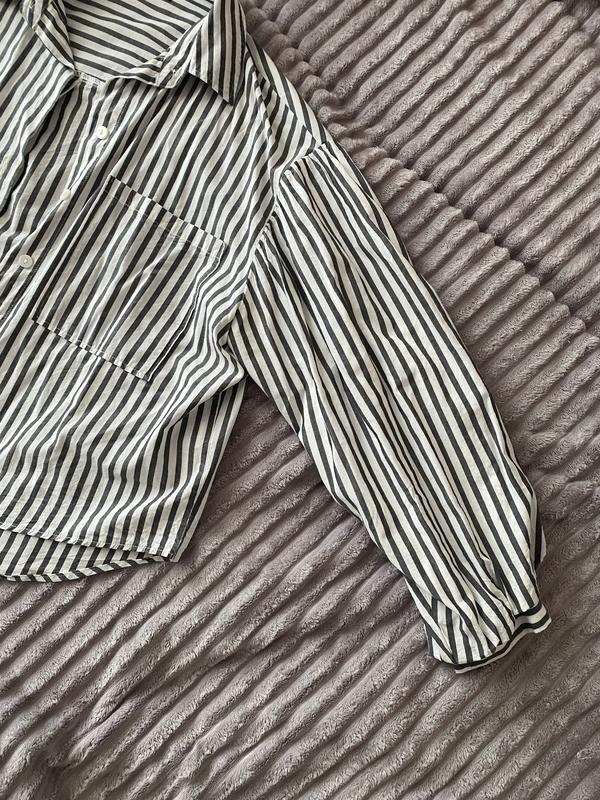 Рубашка блуза zara в полоску с объёмными рукавами на завязках zara