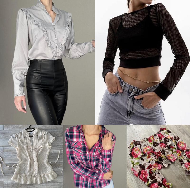 ✅Кроп топ сетка S 449 грн✅Рубашка рубашка в клетку S-M 235 грн✅Блуза со спущенными плечами цветочный принт M-L 99 грн