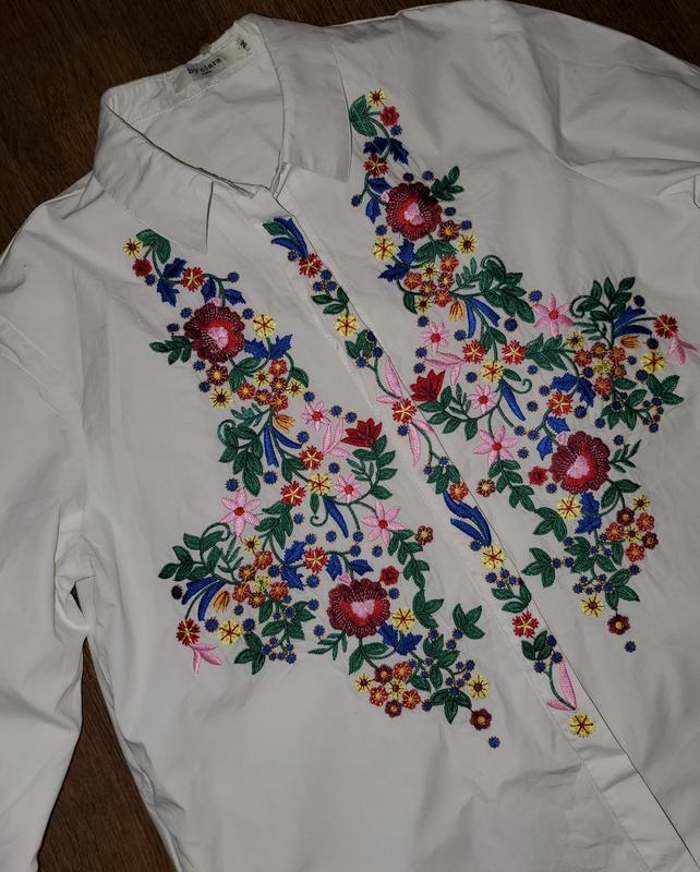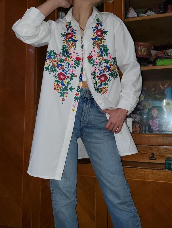 By Clara Paris, маркировка р. М, подойдёт на ХС-С оверсайз, и на М. На фото рост 160см 83-64-83. Состояние идеальное. Качество классное, хлопок, красивая вышивка, по бокам два кармана, шлейки для подкат рукава. Замеры по запросу. Возврат не предусмотрен. Замеры : плечи 41см, рукав от плеча (укороченный) 50см, плечо+рукав 65см, поб. груди 53.5см, длина 80/82см сзади чуть длиннее.