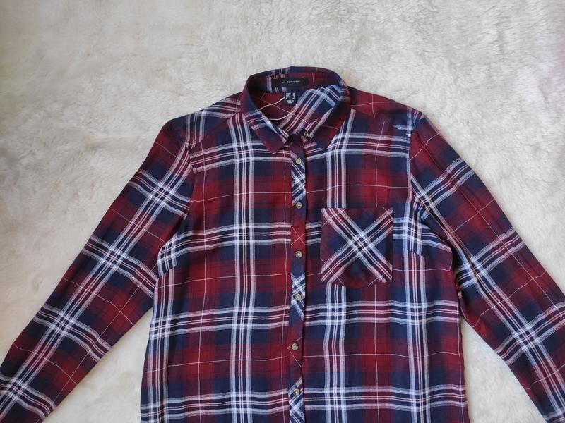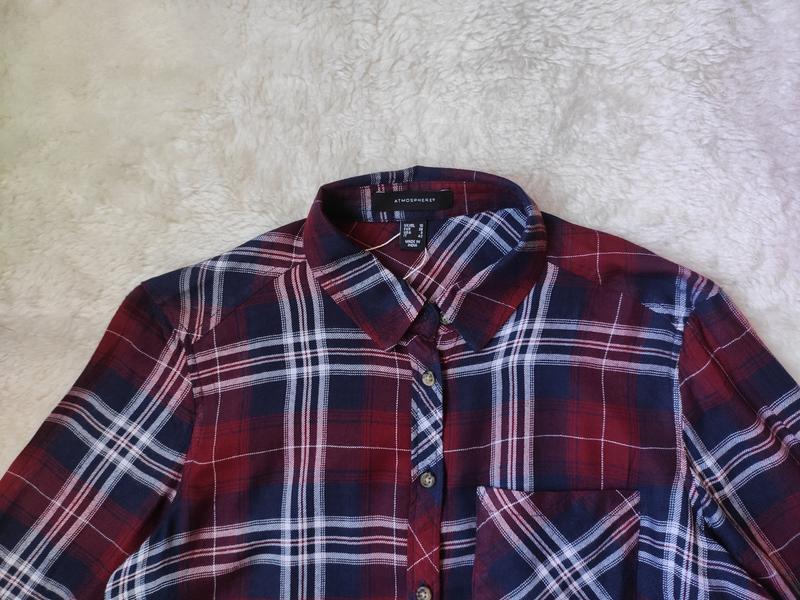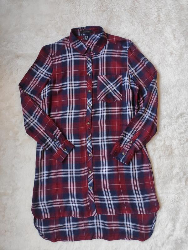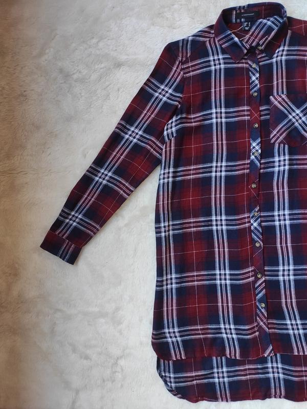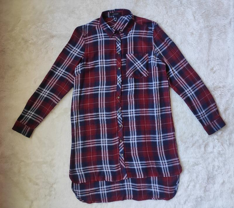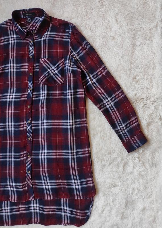 Новая бордовая синяя натуральная длинная рубашка в клетку платье удлиненная туника в полоску от АТМ