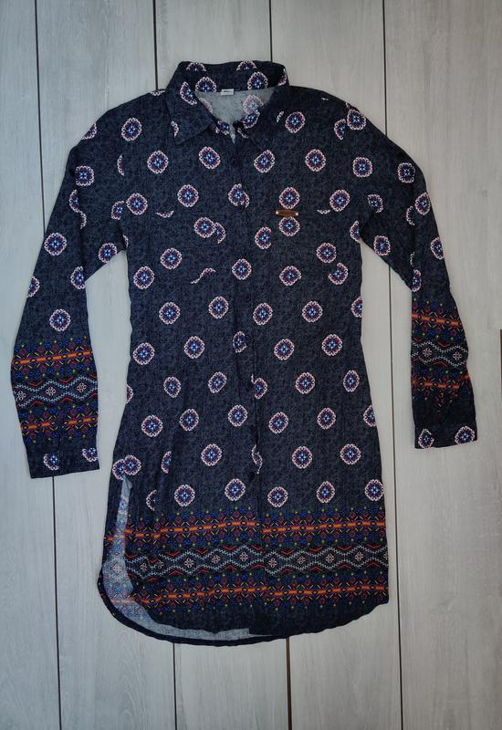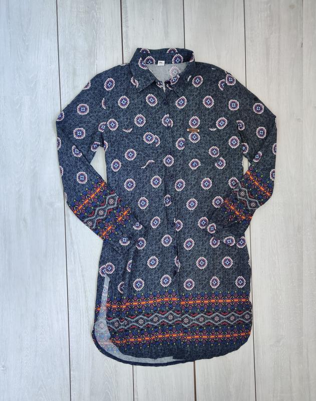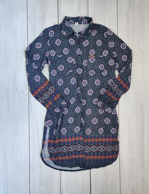 Качественное, яркое легкое платье-рубашка. Длинная рубашка. Интересный фасон с боковыми разрезами.
