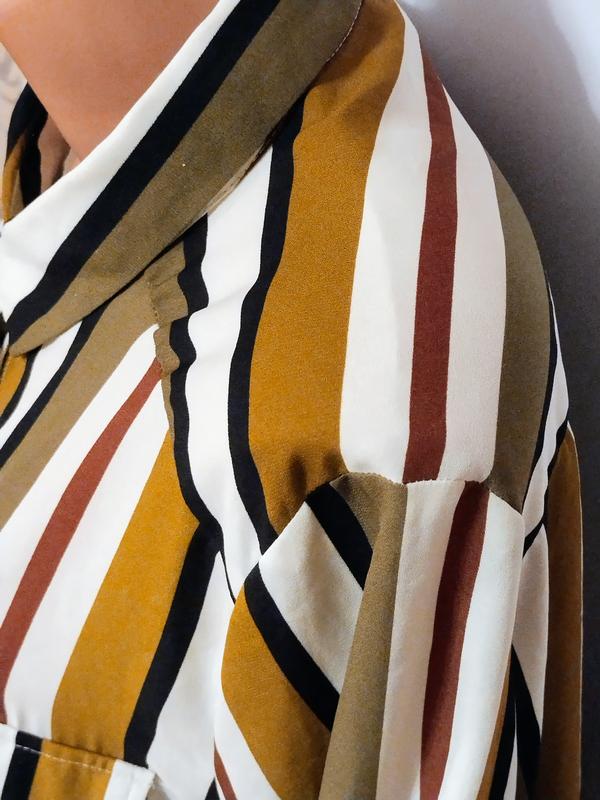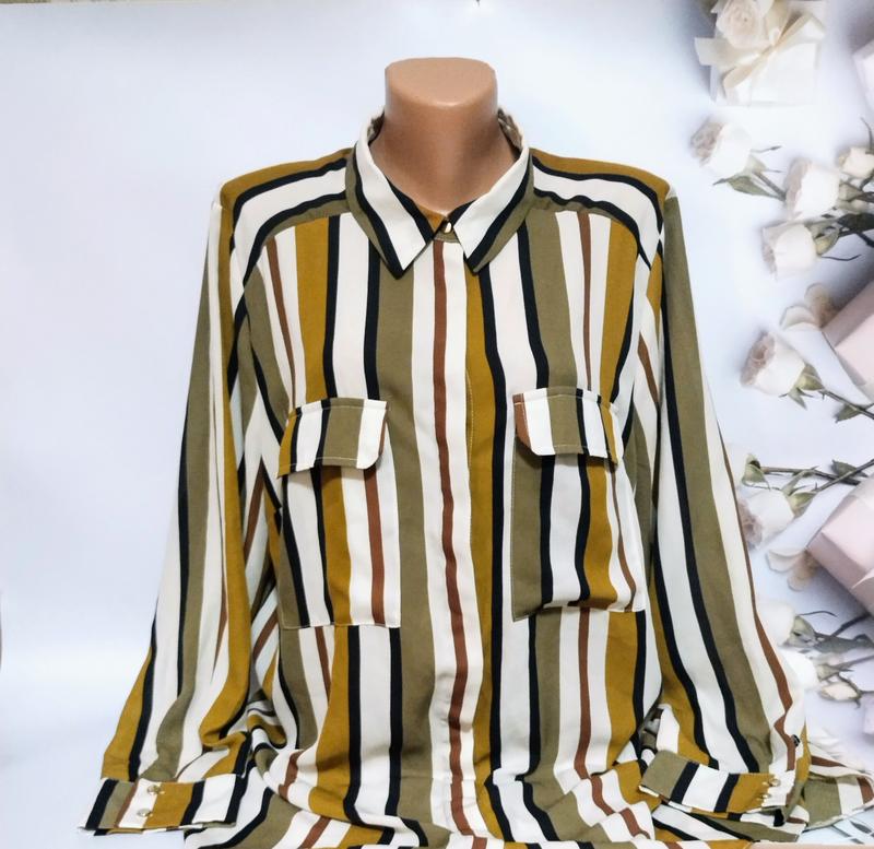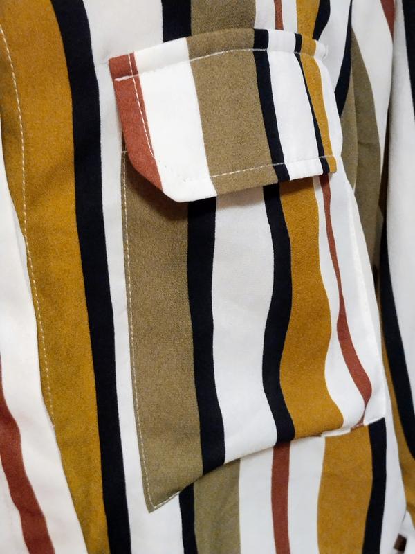 Длина по спинке 85полуобхват груди 61рукав 61пройм рукава 28рукава с манжетом,застегивается на пуговицы, которые закрыты планкойбока блузе закругленные, спинка длиннее переддва накладных кармана с клапанамиСтан нова, але втрачена бiрка