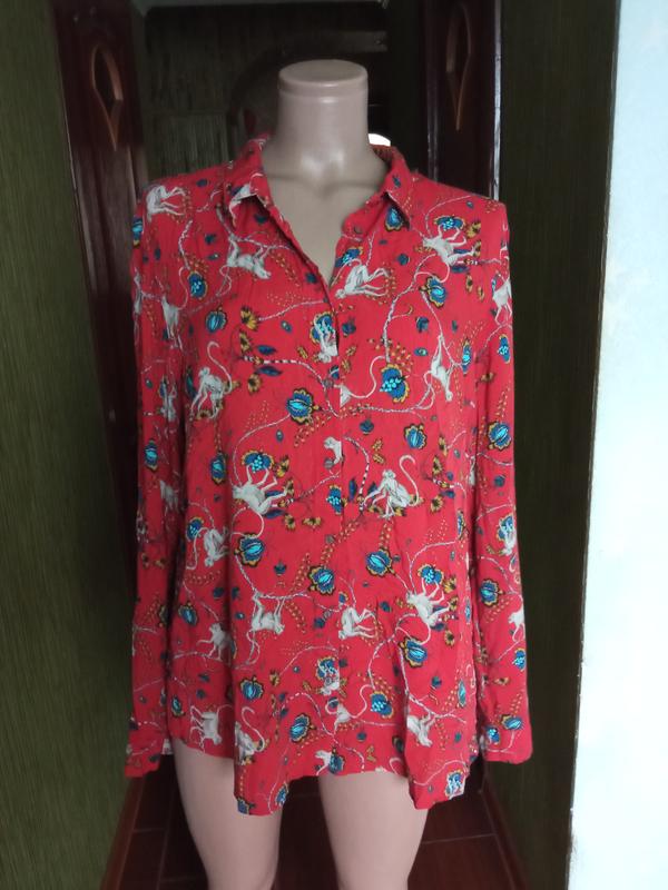 Красная,штапельная рубашка,блуза в принт,вискоза,