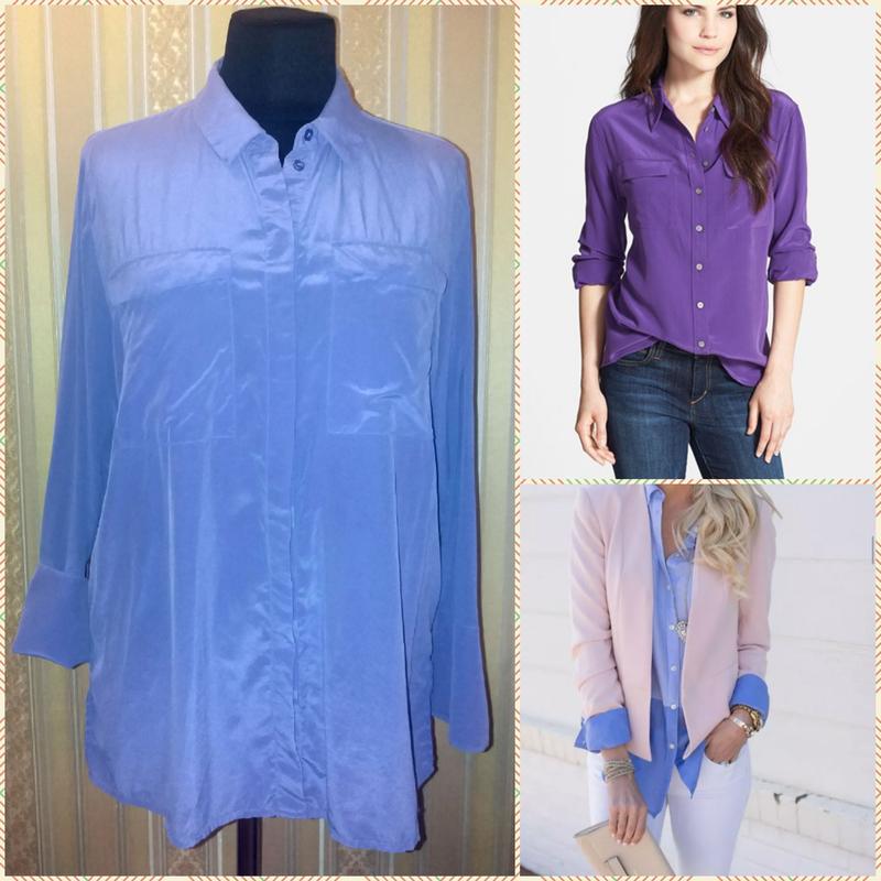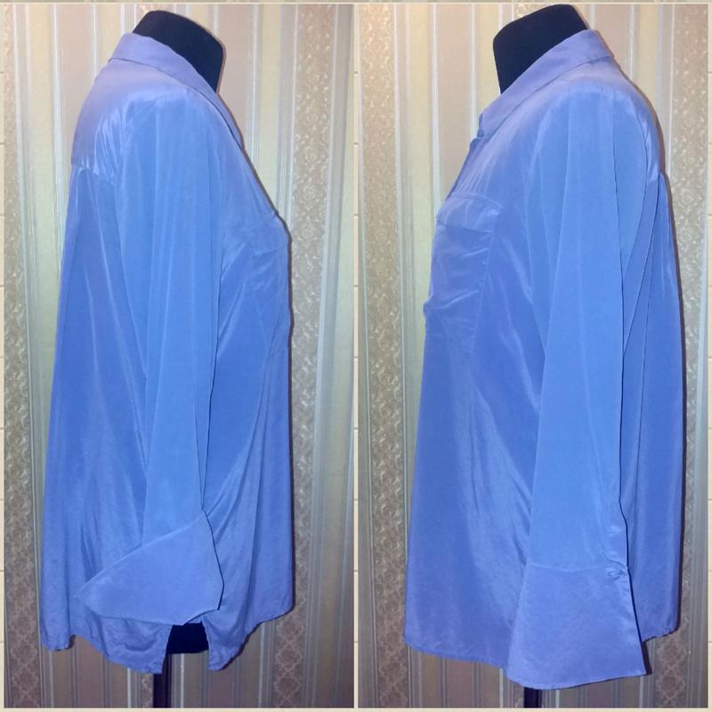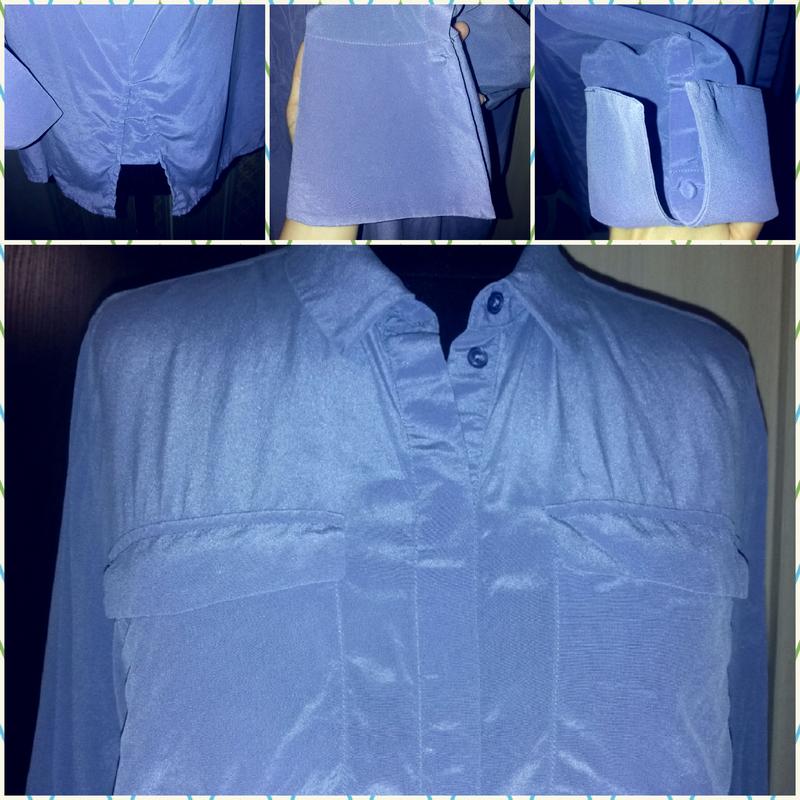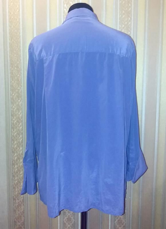 Трендовая блузка-рубашка из натурального шелка прямого кроя, пуговицы скрыты, на рукавах есть возможность отворачивать манжеты, два нагрудных кармана.
