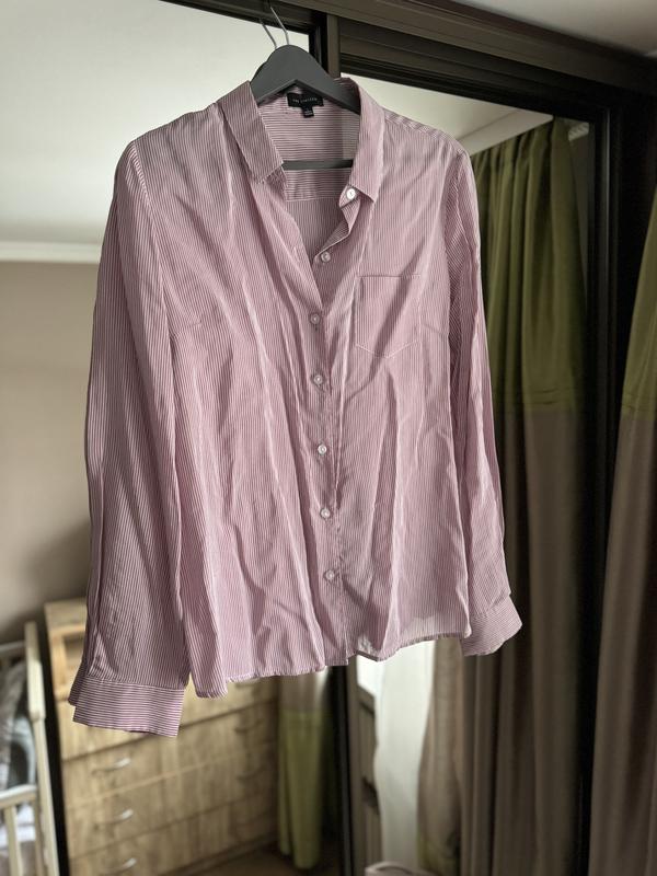 Классная, базовая, легкая рубашка/ блузка в стильную полоску, приятная на ощупь, натуральный состав ткани.
