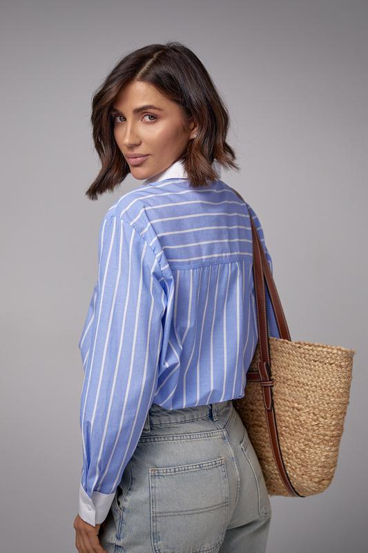 Класична бавовняна сорочка та супер трендова смужка - суміш модних деталей, які зроблять образ кожної модниці ще привабливішим.