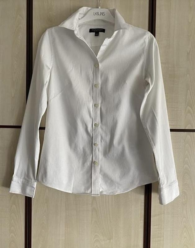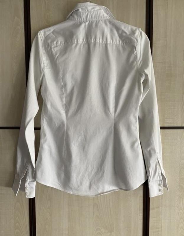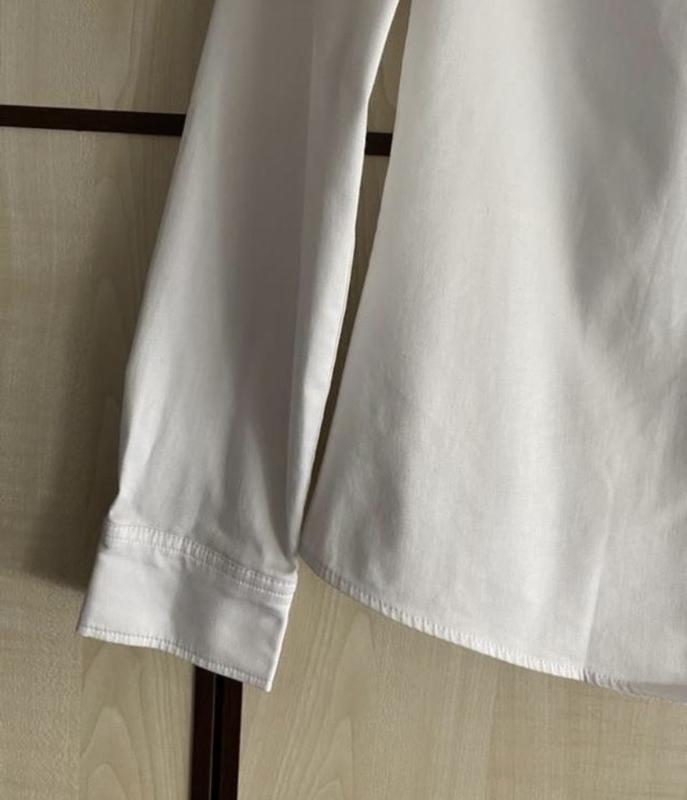 Идеальная белая рубашка из хлопка с добавкой эластана. Длина по спинке 65, по переду 63 см. Рукав 61, плечи 37, по груди 47 по талии 40, по низу 46. За счет эластана тянется на 4 см. Состояние новой