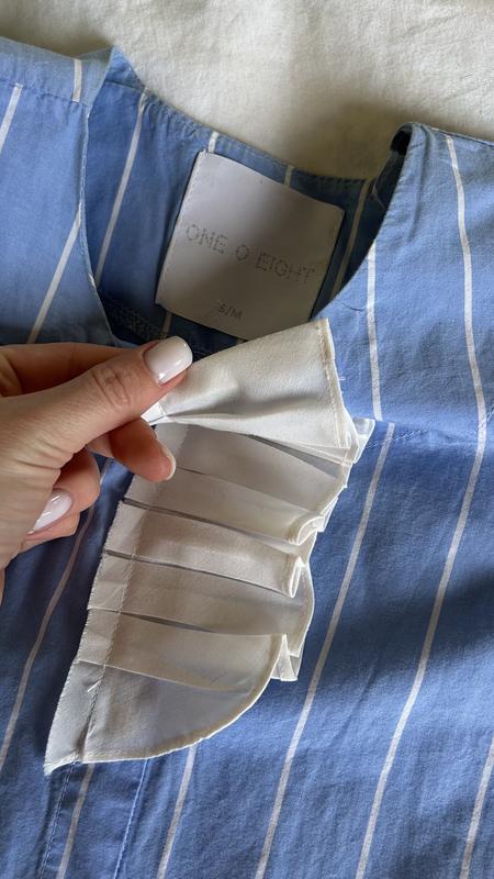 Красивая рубашка в стиле Celine. Невероятно смотрится в готовом аутфите. Натуральный состав ткани - 100% cotton. Застегивается на пуговицы, спереди нейковарный волан (не объемный, аккуратный), акцентные манжеты. Рукав «фонариком»Спинка удлинена. Носить можно как заправляя в ариребро или то поверх брюк или юбок. Состояние ИДЕАЛЬНЫЙ. Размер С-М. Длина по спинке 66см, длина рукава 61см, ПОГ 52см.