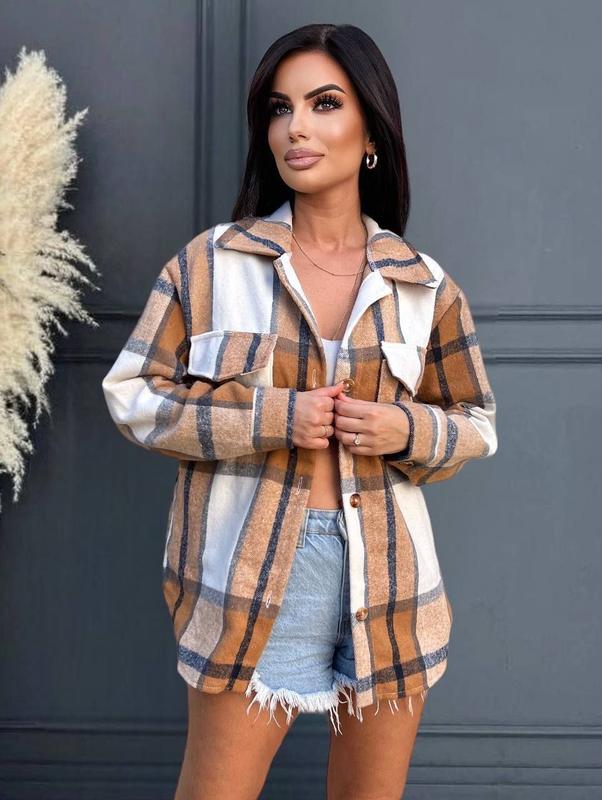 Женская теплая кашемировая рубашка в клетку свободного кроя оверсайз