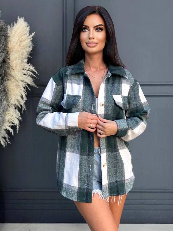Рубашка женская в клетку оверсайз кашемировая зеленая