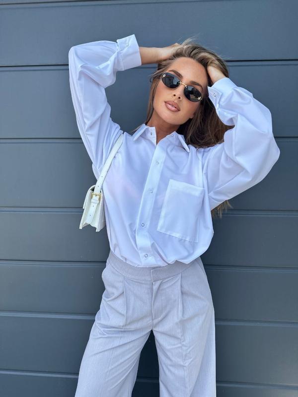 👑Размер:42-50 👑Идеальная посадка и базовая вещь в вашем гардеробе 😉 👑Тканина:лайт 🤗 Цвет: белый 🤗Длина:73см 😚Грудь по рубашке 118см