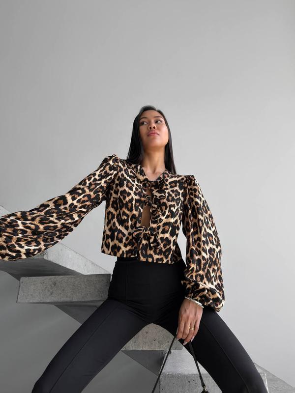 ▫Это та вещь, которая дополнит ваш гардероб😍 Блуза из натуральной ткани, очень удобная и стильная, актуальный принт и фасон 🐆