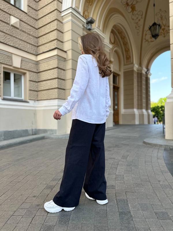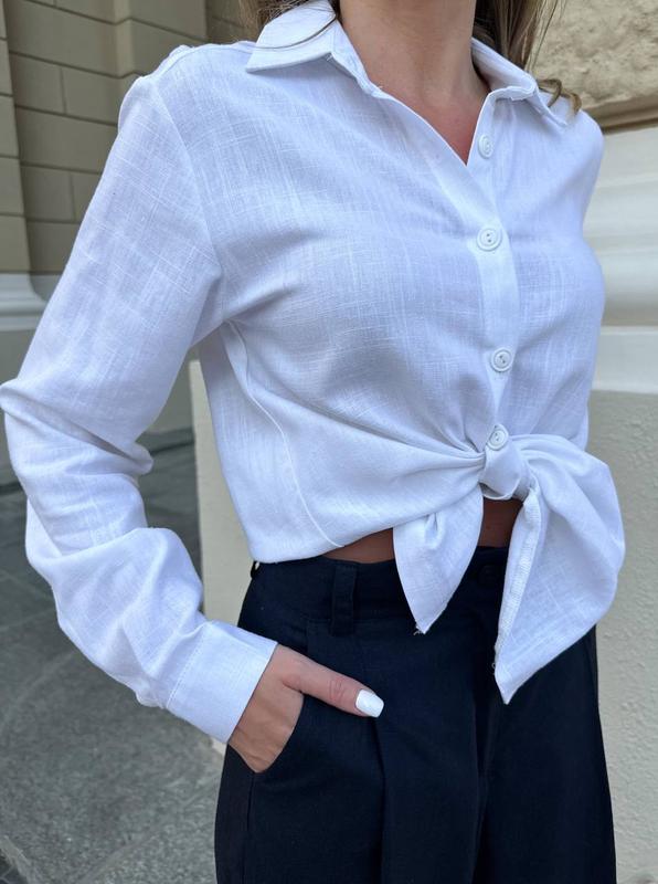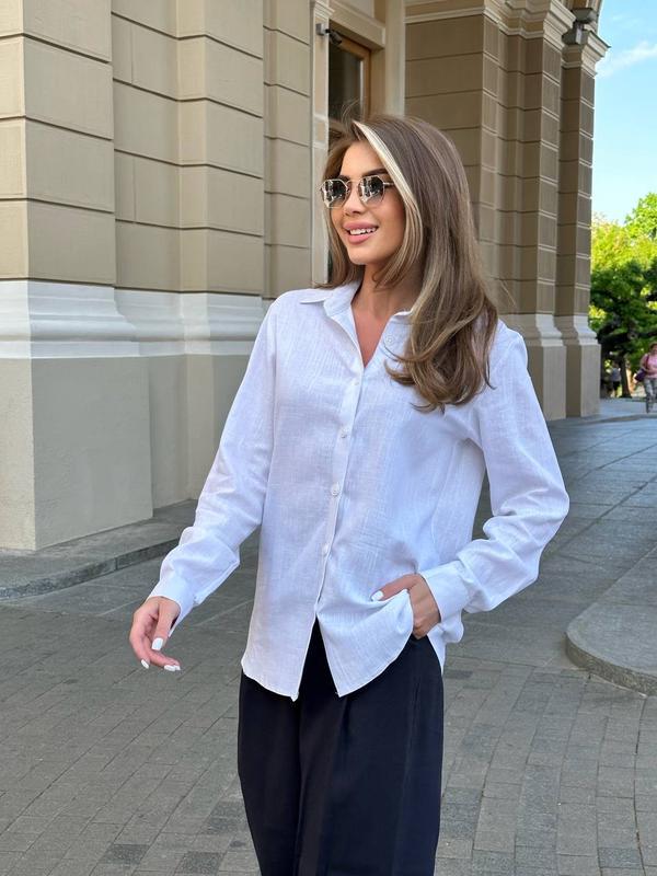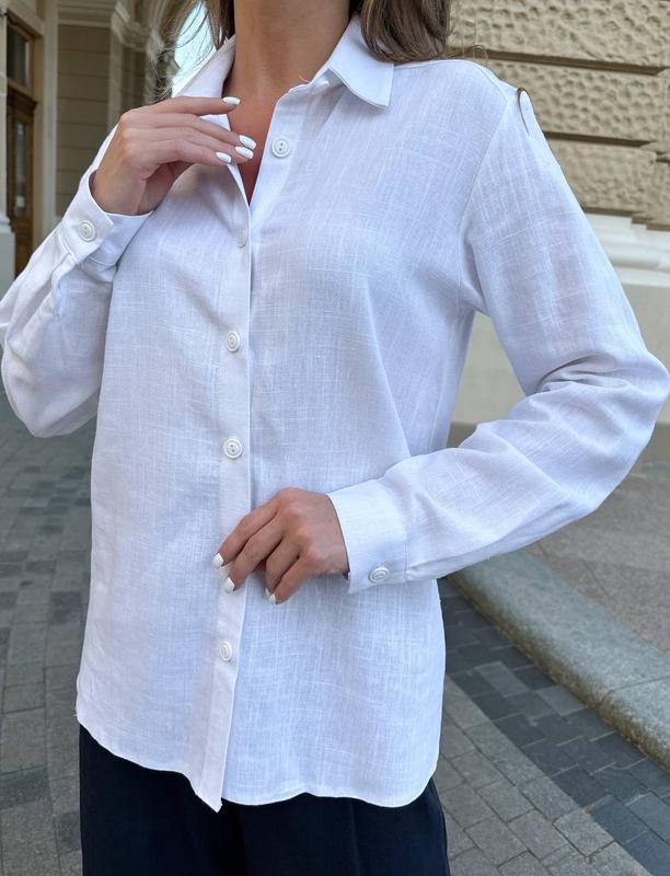 Белая женская рубашка лен 100%. льняная рубашка белая.
