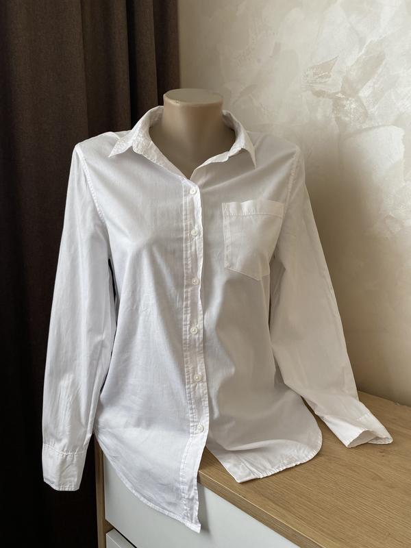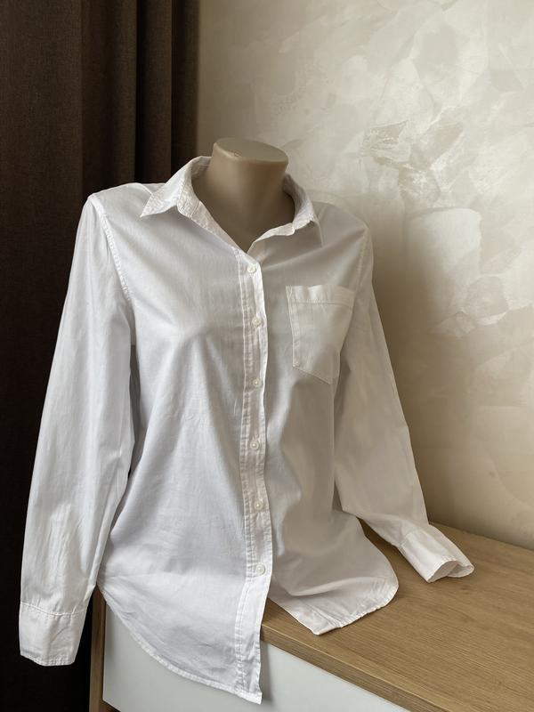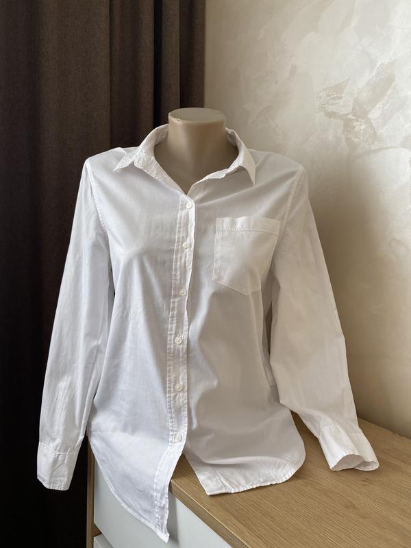 Классическая белая оверсайз футболка от H&MСостояние: как новая, есть дополнительная пуговицаСостав; 100% котонРазмер: XS-MДлина спереди 67 см сзади 70 смПОГ 50 смПлечи 40 см