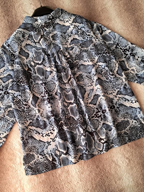 В идеальном состоянии, указан размер L, одевала на М. Очень красивый принт, ткань максимально приемная к телу. Выглядит очень эффектно.