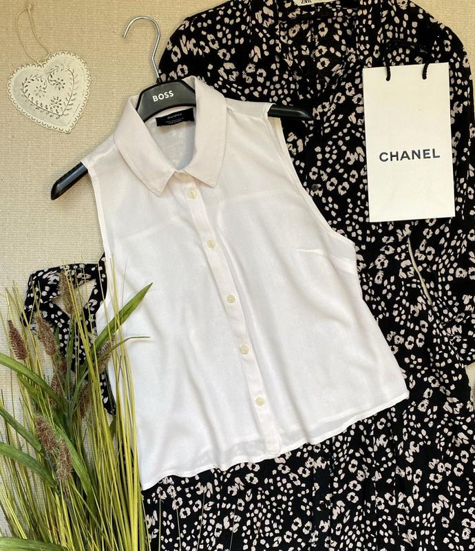 Бледно-розовая хлопковая рубашка Bershka без рукавов, спереди на пуговицах. Размер S. Состояние отличное.