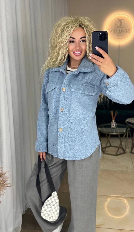 Рубашка женская теплая тедди повседневная белая черная розовая серая голубая ветровая осен...