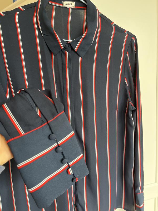Сорочка в смужку, PimkieРазмер М Состояние практически новое, мне крупновато, поэтому не носилаДлина 62Пог 48Плечи 39Рукав от плеча 62