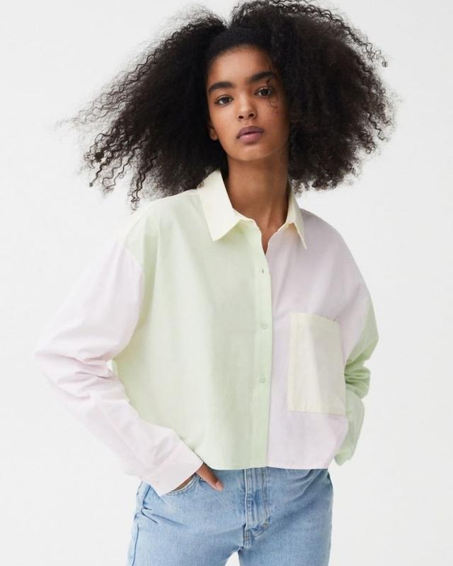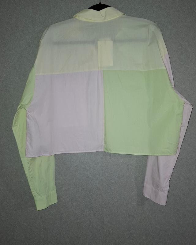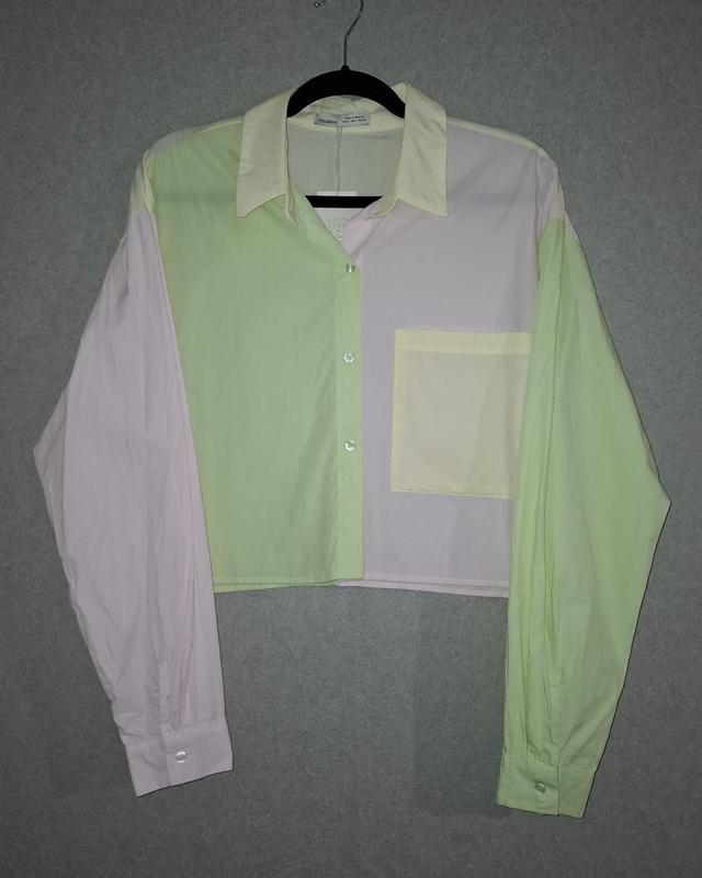 Стильная цветная укороченная рубашка. Розмір по бірці L. Заміри на фото.