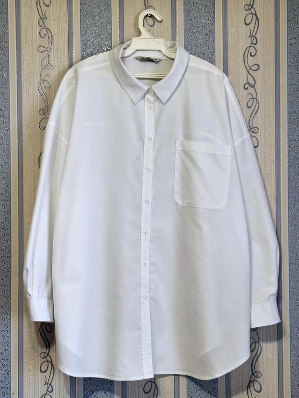 Стильная, свободного кроя рубашка F&F, 100% хлопок. Ткань не тонкая.Длина-83 (по бокам короче), пог-72, рукав от ворота-77.100% ОПЛАТА НА КАРТУ.