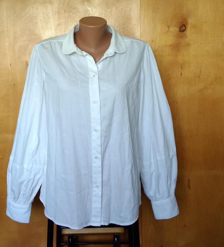 р 10-12 / 44-46-48 Стильная базовая белая блуза рубашка с пышным рукавом хлопок Pieces