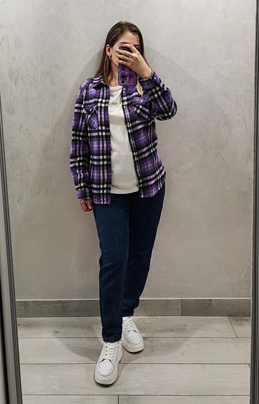 Актуальная фланелевая рубашка в клетку. Застегивается на кнопки. Стан идеален. Бирки срезаны. Указано размер М, подойдет также на С. Ориентируйтесь на замеры. полуобхват груди -48 полу охват талии -46 длина-67 рукав-60