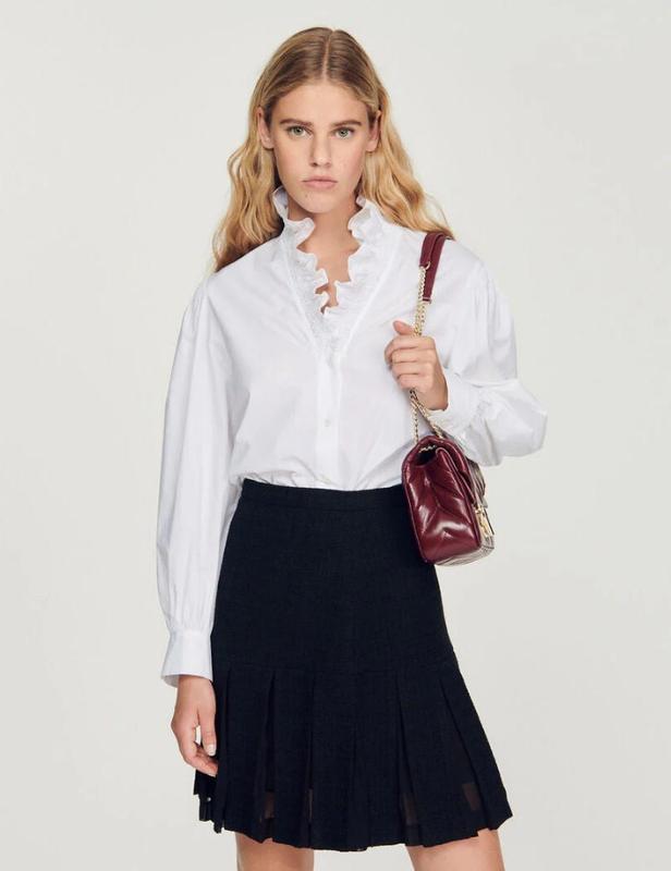 Sandro SFPCM00749 - размер 2 • Женская хлопковая рубашка Sandro • Длинны е рукава • Фантастический воротник с рюшами • Собранные манжеты на пуговицах • Застежка на пуговицах. 7600034811257