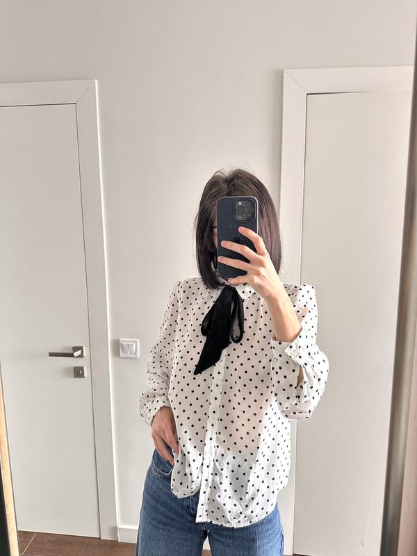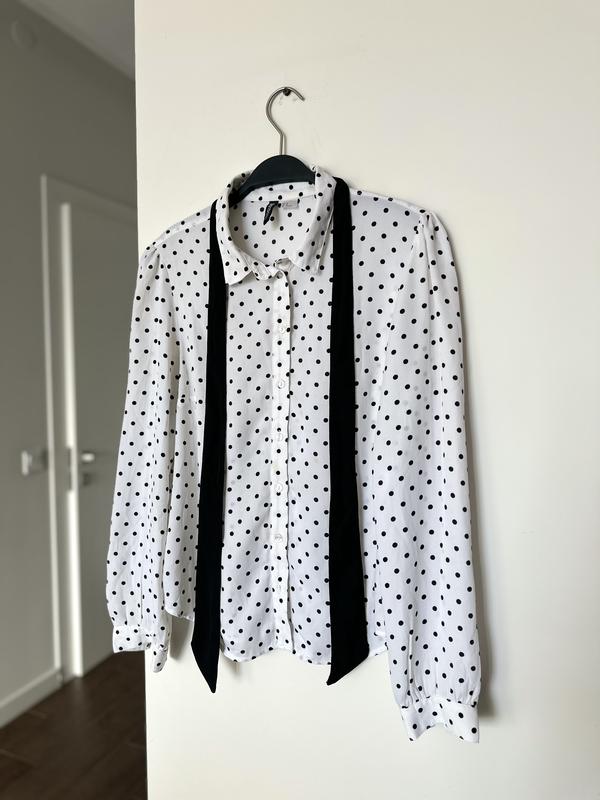 Рубашка блуза H&M, очень классная с трендовой завязкой на шее горошек