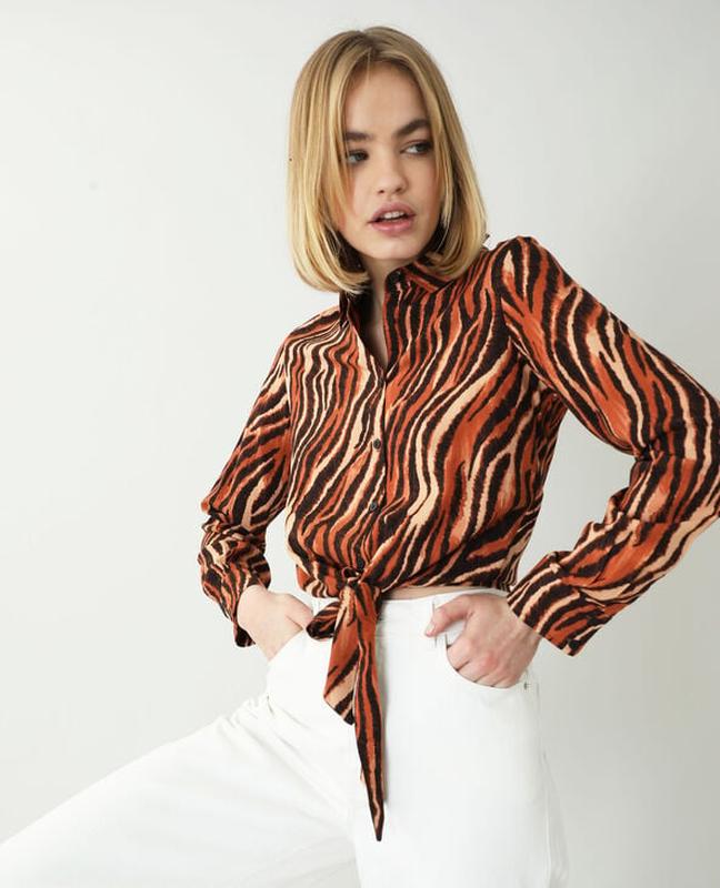 Рубашка с завязками снизу на пуговицах. Размер 42, XL. По факту S-M. Замеры могу сделать 🥰