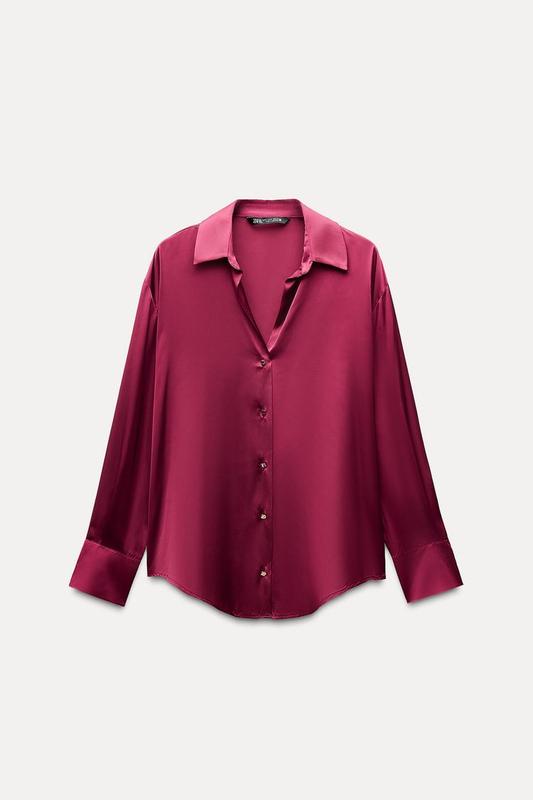 Точилка с классическим воротником, V-образным вырезом и длинными рукавами. Застегивается на золотистые пуговицы спереди.