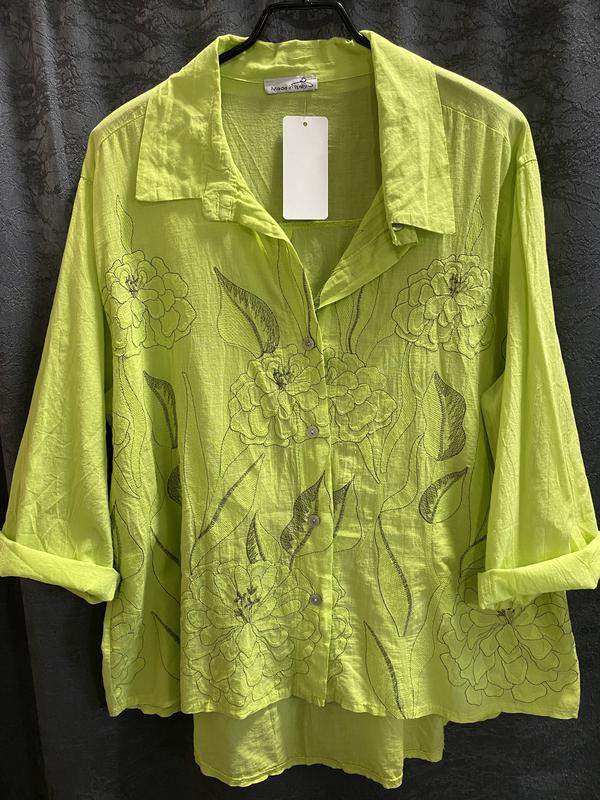🌸 Італійська сорочка з вишивкою Стильна сорочка з квітковим візерунком — ідеальний варіант для теплої пори року. Легка, простора та дуже комфортна! 🔹 Вільний фасон (оверсайз) 🔹 Вишивка з квітковим орнаментом 🔹 Рукав 3/4 з можливістю підкочування 🔹 Подовжена спинка 📏 Розмір: універсальний (підійде на 48–54) 🧵 Матеріал: натуральна легка тканина (схожа на льон) 🇮🇹 Виробник: Італія 🎨 Кольори в наявності: лайм, рожевий, бежевий 💰 Ціна: уточнюйте в повідомленнях ✨ Ідеально поєднується як з джинсами, так і з класичними штанами або шортами.