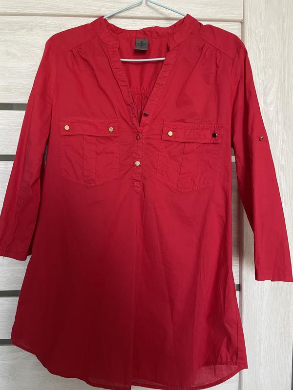 Рубашка/туніка жіноча червона, розмір s-m, 💯 котон