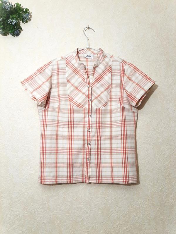 Рубашка женская летняя, в клетку белая серая красная, короткие рукава, воротник-стойка. Бренд Gina Benotti. Маркировка размера L. Состав 75% хлопок, 25% полиэстер. Отличное качество ткани. Не трикотаж. Нет стрейча. Идеальное состояние. Замеры: длина спереди с начала плеча 65см, длина плеча 13см, ширина 2-х плечей 42см, длина рукава 16,5см, полуобъем по линии груди 55см, полуобъем по линии низа 57см. !!! Рекомендую всегда сравнивать с личными измерениями и одеждой. Посмотрите и другие Мои объявления с разной чудесной одеждой для всех. Подписывайтесь, если интересны новые объявления. Несколько покупок сразу - объединяю все в одну посылку. Посилки присылаю Укр-почтой, Новой почтой, Rozetka, Meest.
