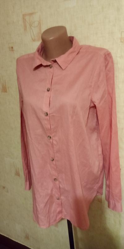 Практичная рубашка модного пудрового цвета. Дефектов нет. Сзади длиннее.За дополнительной информацией обращайтесь