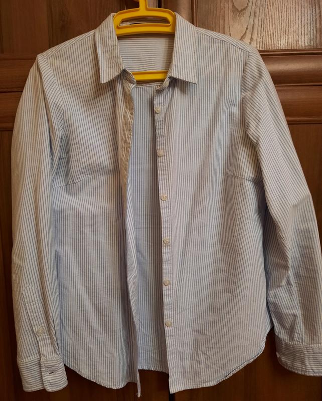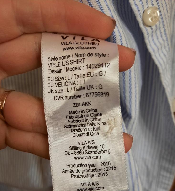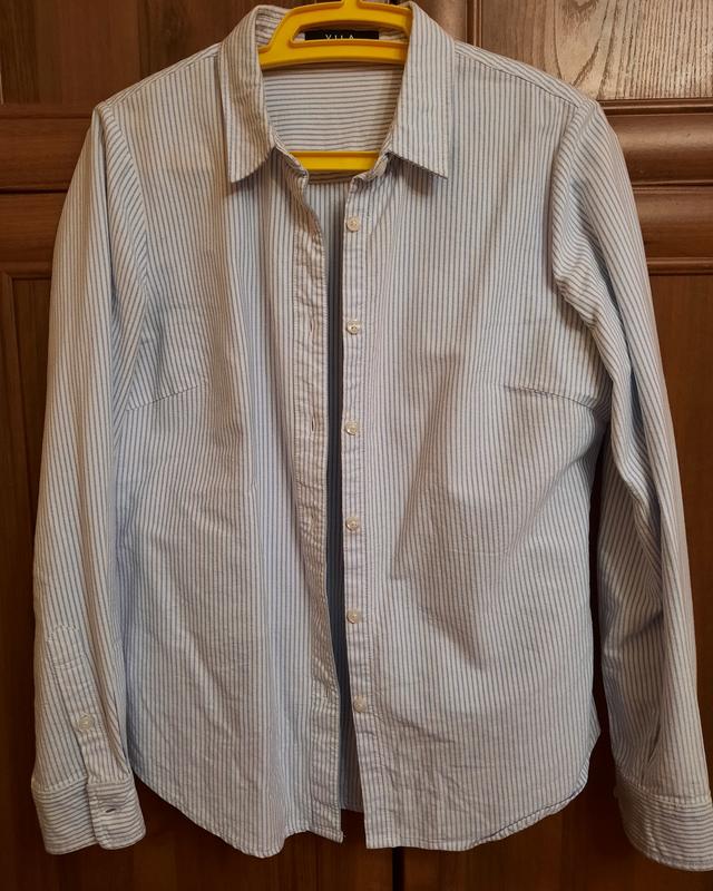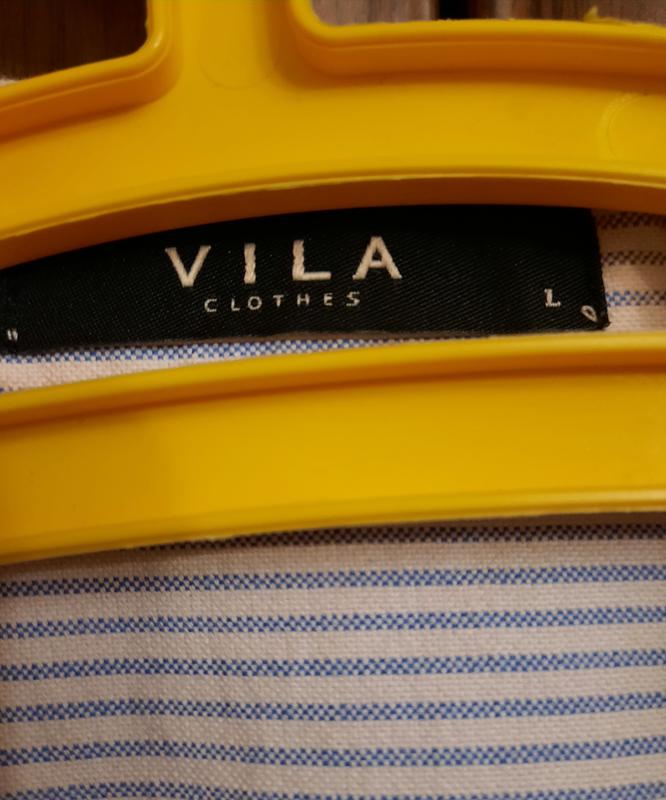 Якісна сорочка від бренду VILA clothes , з натуральної тканини красивого голубенького кольору ,красиво поєднується з діловим та повсякденним стилем, розмір вказаний L но по факту краще підійде на М
