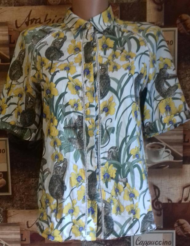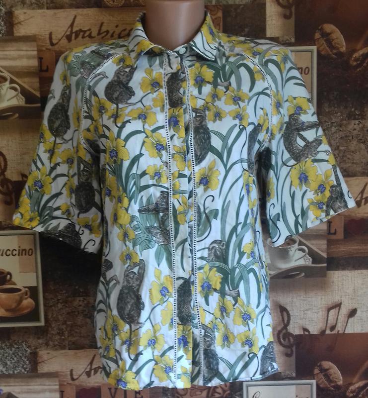 Яркая хлопковая рубашка,блузка Paul&Joe sister,100%хлопок, сделана в Македонии.Неповторимый,яркий принт, пуговицы брендированы,состояние новой вещи,бирки нет,вноске не была.Замеры:пог-50см,по пл.швам-35см,по талии-48см,по низу-50см,длина-68см,рукав от воротничка-44см.