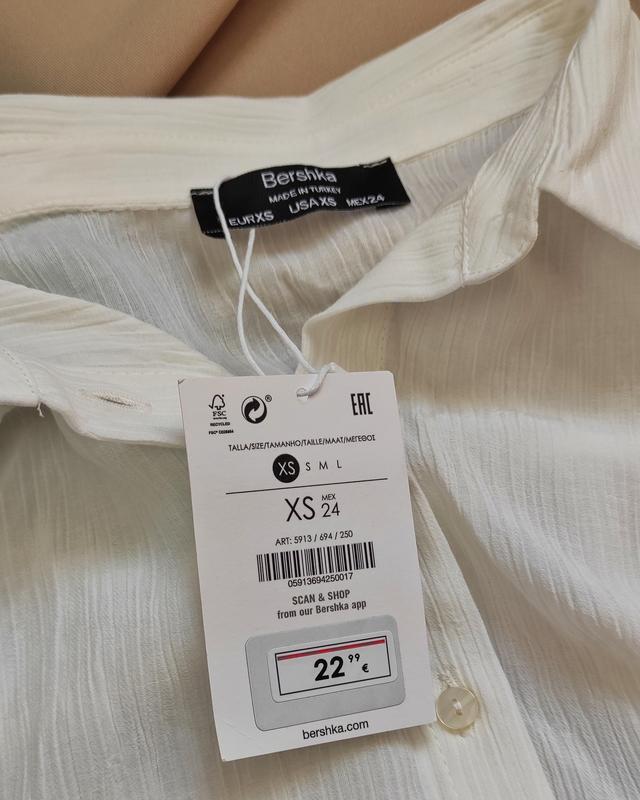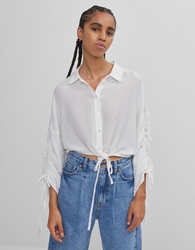 Біла блуза-топ Bershka. Нова, з біркою. На гудзиках, рукава та низ топу регулюються зав'язками. Розмір XSНапівобхват грудей: 52Довжина рукава: 25Довжина речі: 37