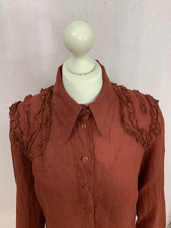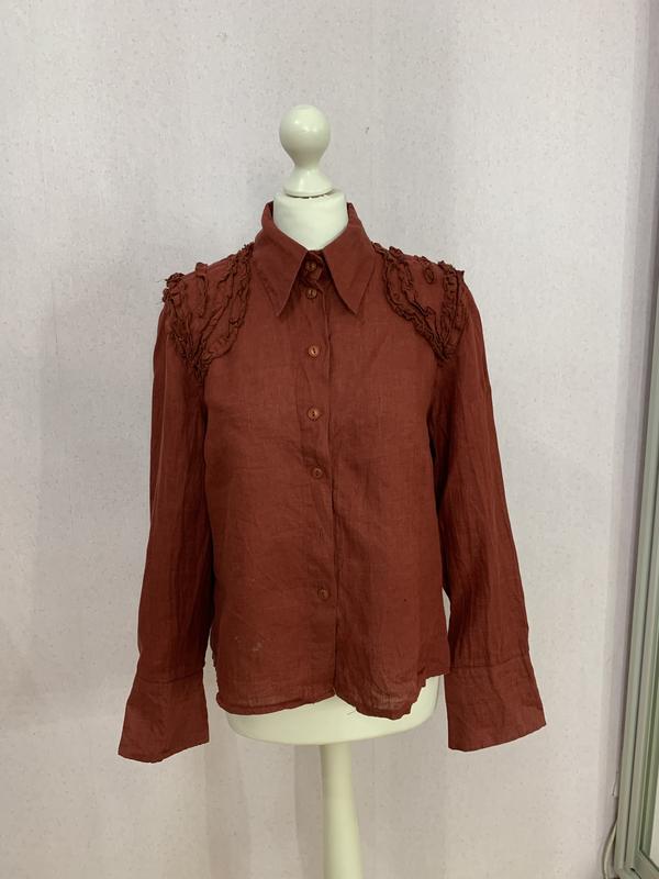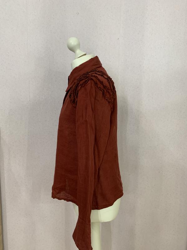 Очень нарядная и необычная блуза. Больше прямого немного укорочённого кроя. Красивый терракотовый цвет. Замеры по запросу. В Киеве можно забрать
