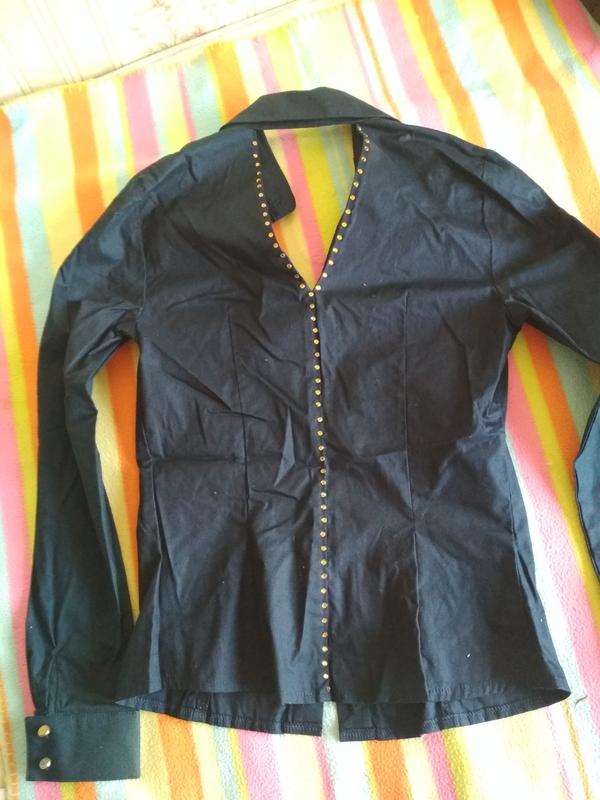 56 длина, пог 40, пот 36, рукав 59, плечи 37, нарядная, приталенная, ткань хлопок, плотноватая, новая