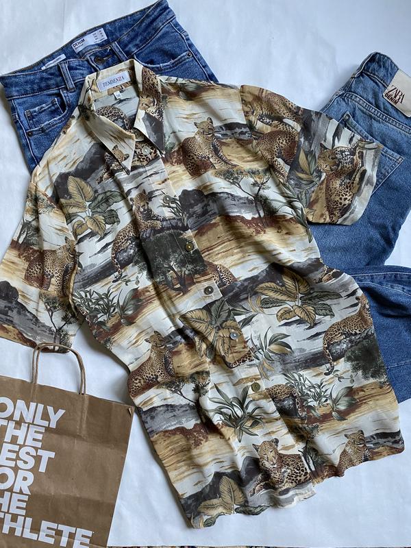 Брендовая рубашка с крутым принтом известного бренда. Материал вискоза. Состояние идеал, без следов носки!