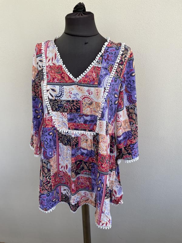 Рубашка женская блуза в принт коричневого цвета удлинена от бренда aqua mare m l
