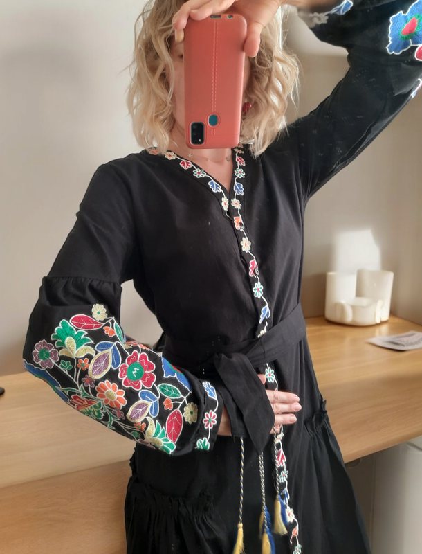 Платье вышиванка из широтки и рукавами и кисточками