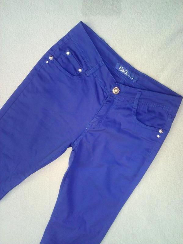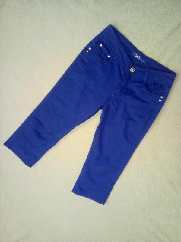 Женские модные бриджи.Рассчитаны на 42-44 р.Цвет электрик.Ткань по типу тонкого джинса.Хорошо тянется. Без дефектов. Замеры по просьбе