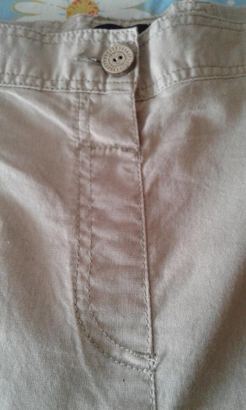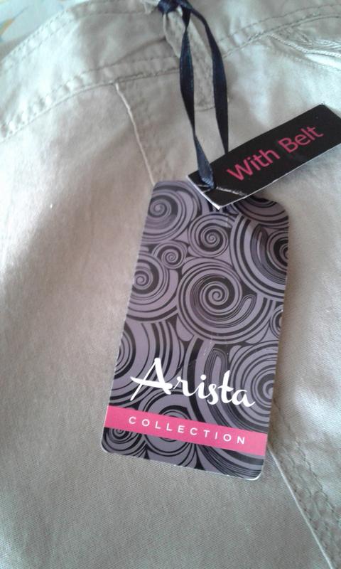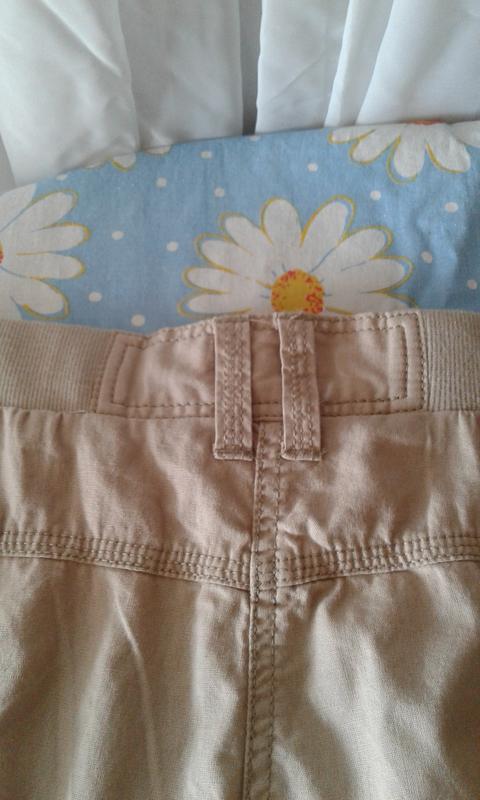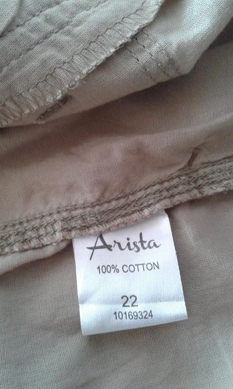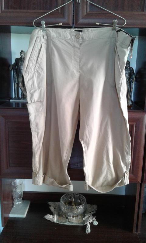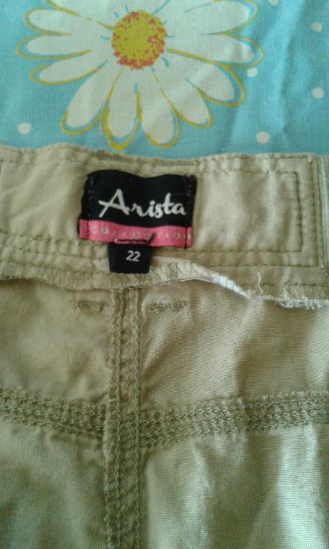 Легкие бриджи ,шорты хлопковые песочного цвета в стиле сафари батал Arista .Деревянные пуговицы ,имитация ширинки.Сзади на кокетке ,имеется два накладных кармана ,впереди три кармана .Имеется 6 шлевок для ремня .На поясе имеются трикотажные вставки.Отвороты штанин фиксируются патами. Замеры:Ширина пояса 58 ,Высота посадки впереди 36 ,Высота посадки сзади 45,ПОБ 77,5 ,Полуобхват бедра вверху штанины -40,5 , Длина внешнего шва (с поясом)72 без отворота 86,5 с отворотом 78 ,Длина внутреннего шва без отворота 57,5 ,с отворотом 49 ,рост, шаговый шов ,Ширина низа 27,5