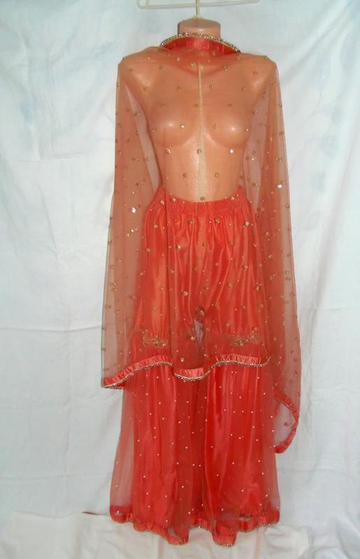 восточные,индийские брюки и шаль р.S-M,в отличном состоянии,штаны выполнены из атласа,сверху фатин,украшены бусинами.Шаль так же украшена бусинами
