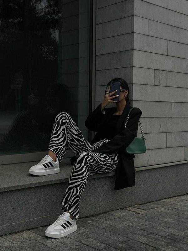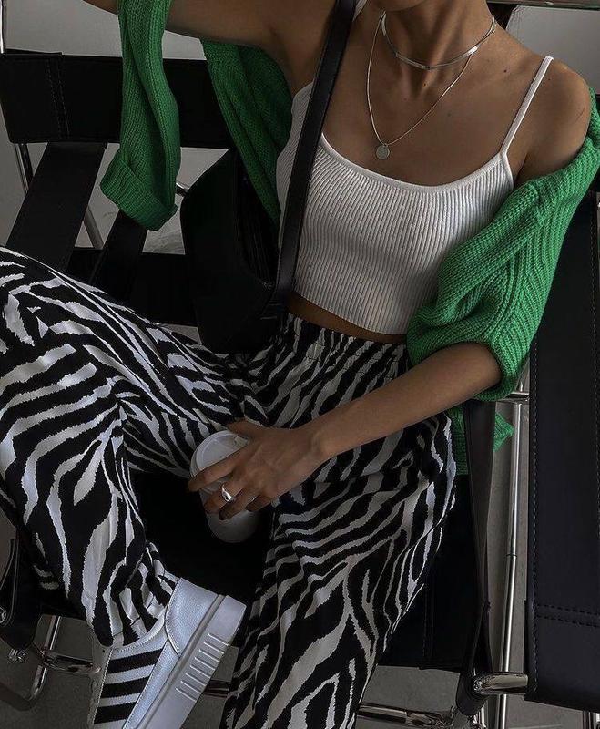 Новинка 💔Брюки с принтом «Зебра» ▪️Модель sh 259 ▪️Размер 42-46 ▪️Тканина - софт ▪️Цвет - принт зебра Легкие и удобные брюки с трендовым принтом 😍 Идеально сочетаются с белым топом 🔥