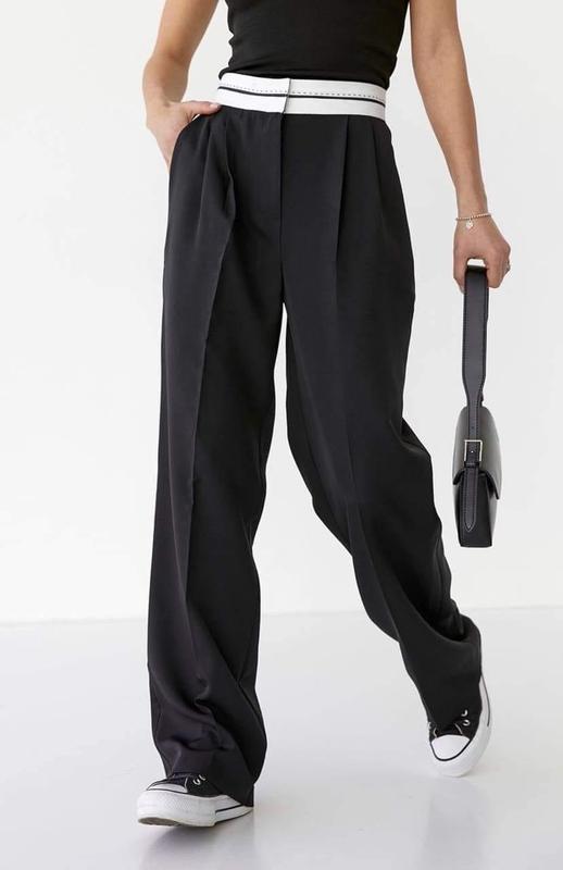 Брюки палаццо широкие прямые брюки на высокой посадке пояс на липучке стильные базовые трендовые черные бежевые серые розовые
