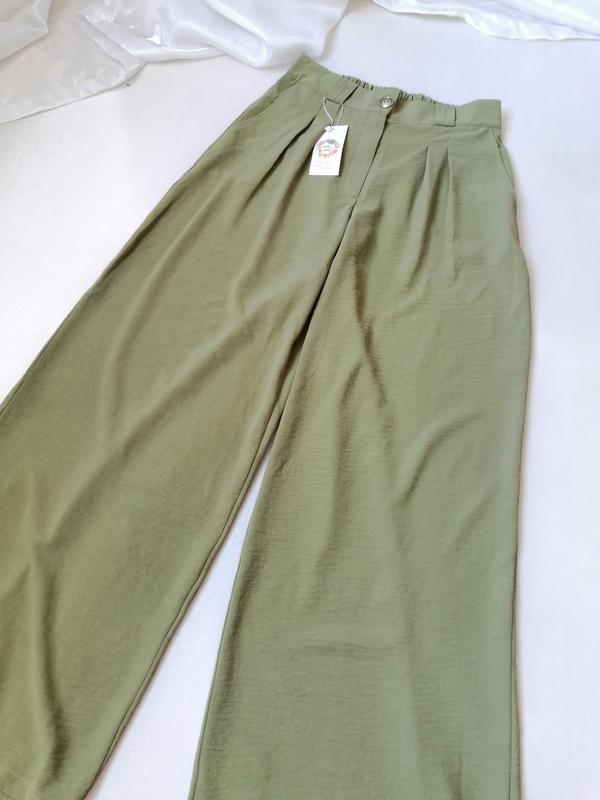 стильные летние брюки Палаццо ткань жатка очень эффектные размер на этикетке указан 42-46 два боковых кармана качество пошива отличное талия на резинке сзади есть петельки для пояса полуобхват талии 34 см тянется на 48 см максимальная хватали 96 см полуобхват бёдер 59 см тянется на 76 см посадка высокая спереди 28 см сзади 40 см длина штанов по внешнему боковому шву 108 см по внутреннему шаговому шву 82 см ширина штанины в самом низу 34 см в полуобхвате тканина тягнеться жниварка не трикотаж костюмка етикеток складом тканини немає допускаю погрешность замерах плюс-минус 1 см возможно отправка безопасной оплатой с осмотром на почте