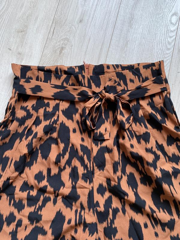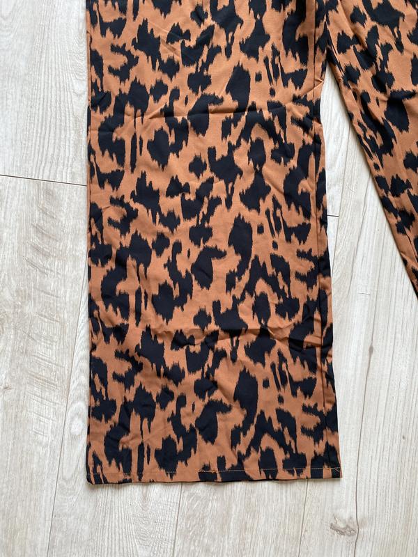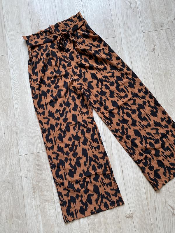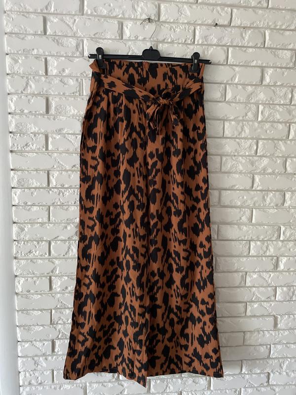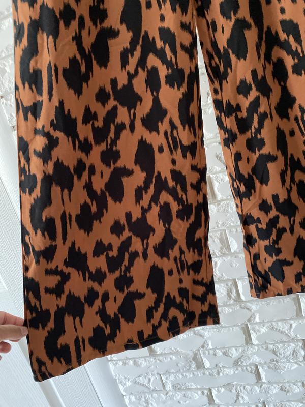 Красивые брюки широкие палаццо животный принт 12 лДлина 110 смПолуобхват талии 40- пасок сзади молнияСтегон 57Посадка 41Ширина брюк внизу 33Полиэстер